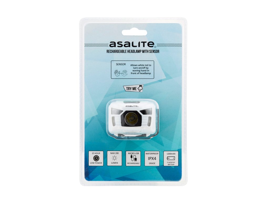 Univerzálna nabíjateľná LED čelovka s výkonom 3 W a senzorom pohybu rúk na zapnutie/vypnutie, biele (3 W) a červené svetlo (2 x LED), maximálna svietivosť bieleho svetla 200 lm, výdrž batérie - biele svetlo 4/10/20 hodín a červené svetlo 40/80 hodín, zabudovaná Li-Polymer batéria s kapacitou 1200 mAh, stupeň krytia IPX4, hmotnosť 74 g, čierna farba tela, záruka 24 mesiacov