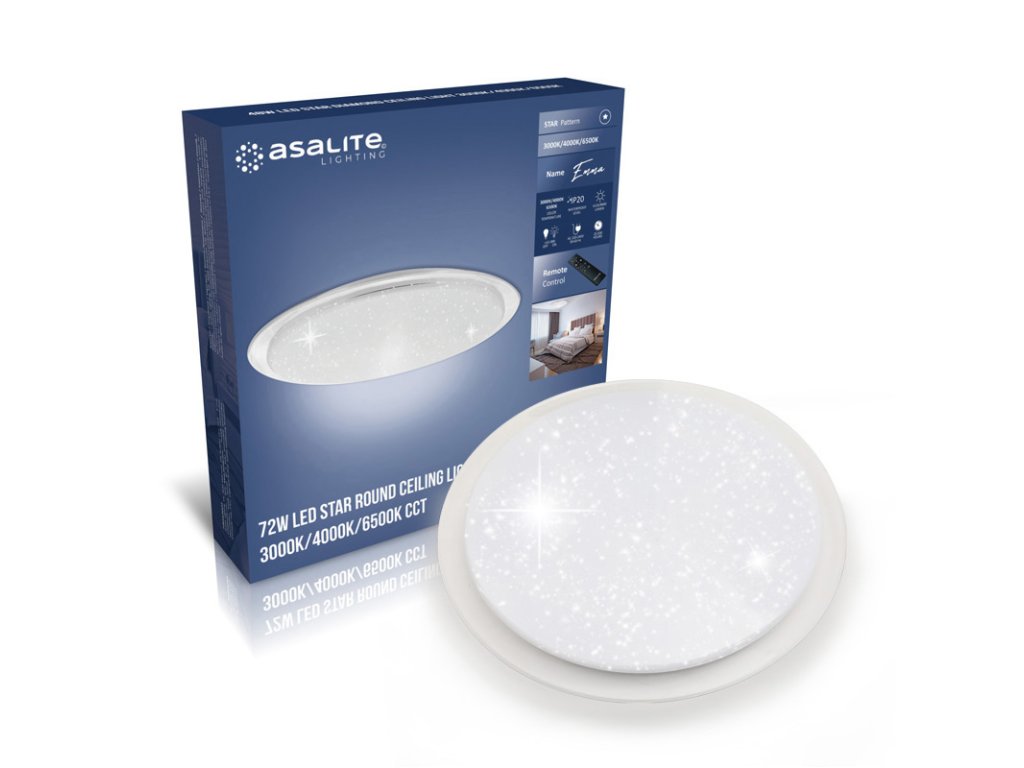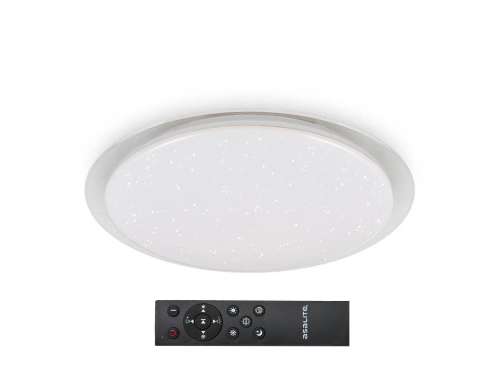 LED kruhové prisadené svietidlo s výkonom 72 W a možnosťou meniť farbu a intenzitu svetla pomocou diaľkového ovládania, 3 odtiene bielej (3000K-4000K-6500K), maximálna svietivosť 6120 lm, mliečny opálový difúzor/opálový difúzor so "STAR" efektom, stupeň krytia IP20, energetická trieda F, záruka 24 mesiacov