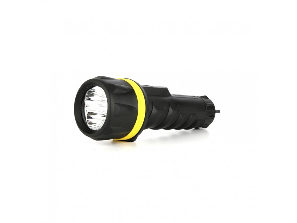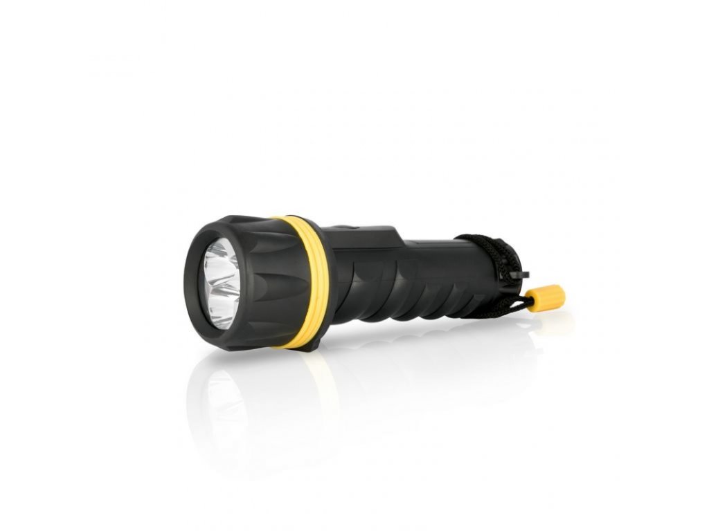 Gumená LED ručná lampička s výkonom 0,75 W, svietivosť 10 lm, dosah svetla cca 10 m, výdrž na batérie cca 40 hodín (závisí od typu batérií), napájanie pomocou 2 x "D" batérií - nie sú v balení, záruka 24 mesiacov