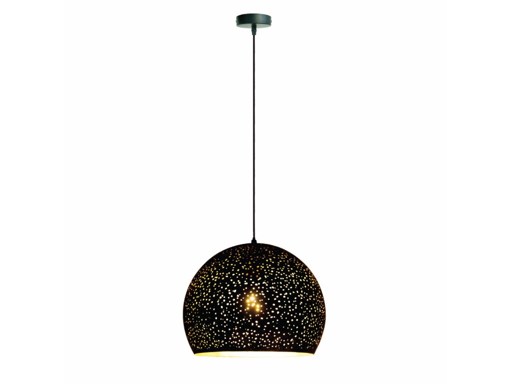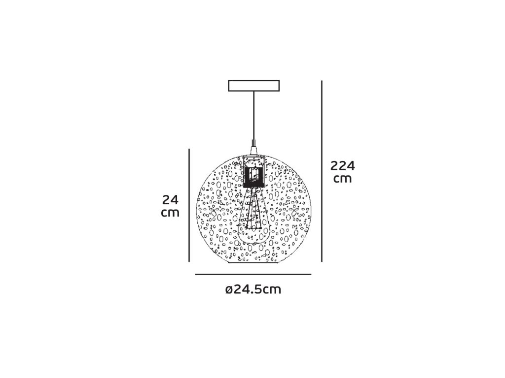 Luster na E27 žiarovku (max. 60 W) z čierneho kovu, čierne tienidlo z bodkami, cez ktoré presvitá svetlo, priemer tienidla 24,5 cm x výška tienidla 24 cm, celková dĺžka lustra 224 cm, stupeň krytia IP20.